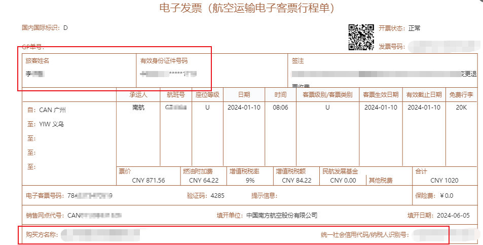 1、若是数电的电子客票行程单,则需要在发票上体现公司的名称和税号才可以税前扣除(如,图1);若未体现公司信息则建议换开,否则不能税前扣除;